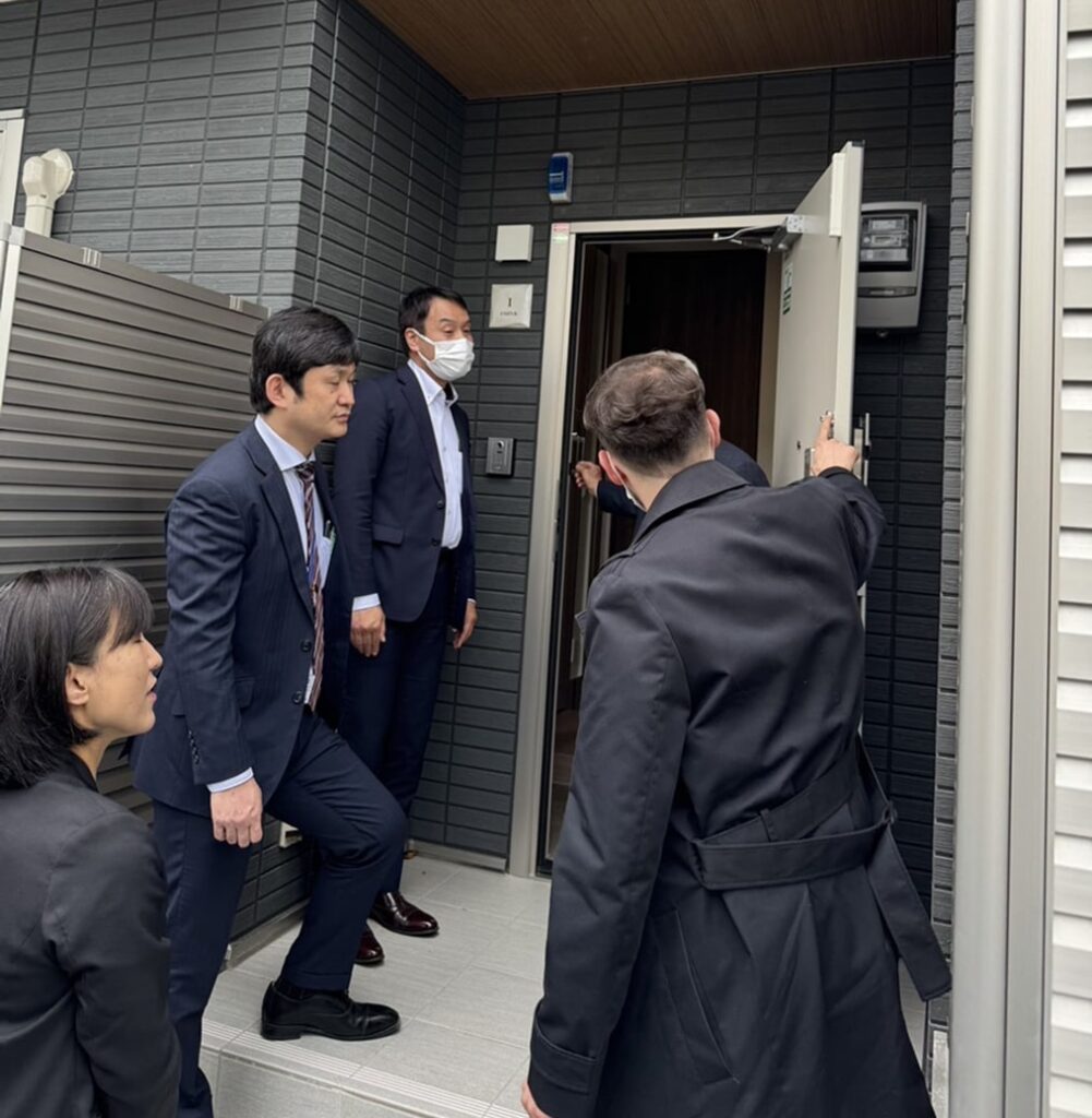 去る4月10日(木)、ドイツ警察のご担当者様が、福岡県警様、福岡県防犯設備士協会様のご案内で、大和ハウス工業様施工で弊社製血流認証装置/AQUBIOⅡ(アキュービオ・ツー) の導入物件(福岡県春日市)を見学されました。